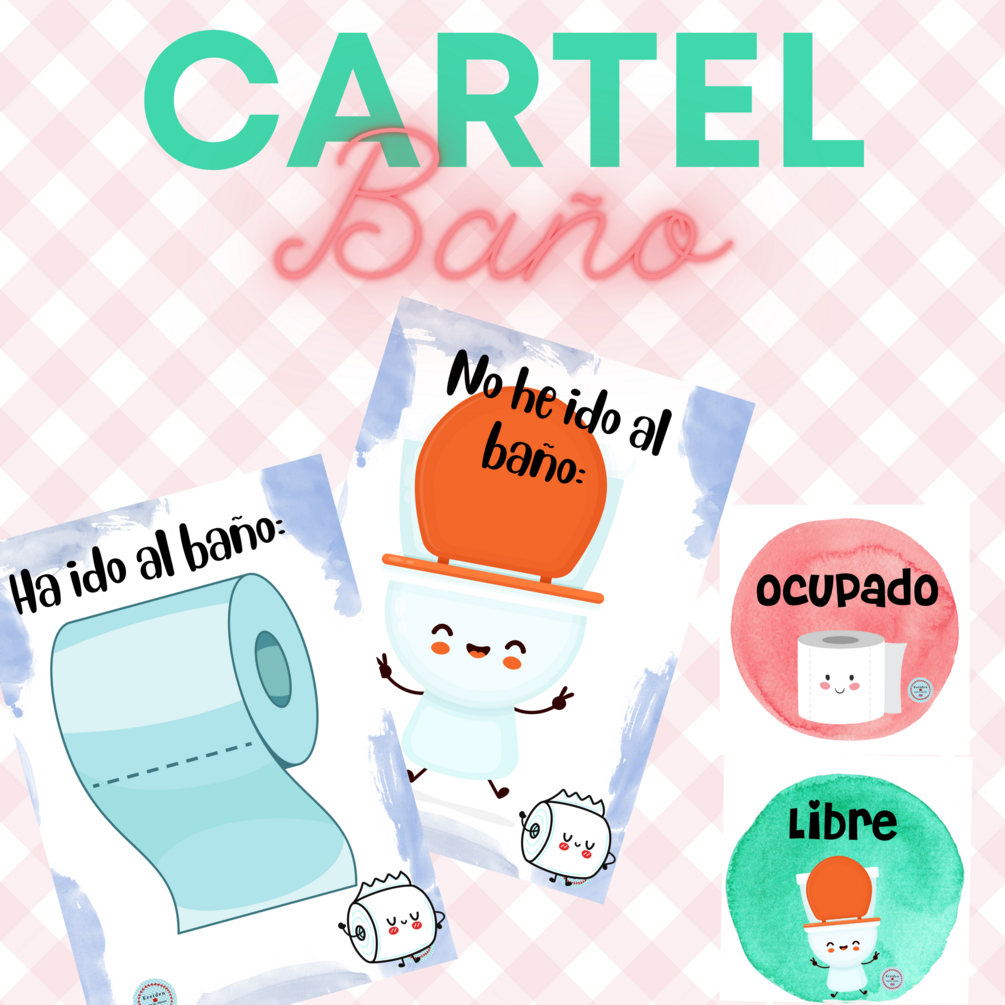 Este pack incluye dos carteles para imprimir a A4 donde poner los mini váteres con los nombres y así controlar quien ha ido al baño y quien no.
